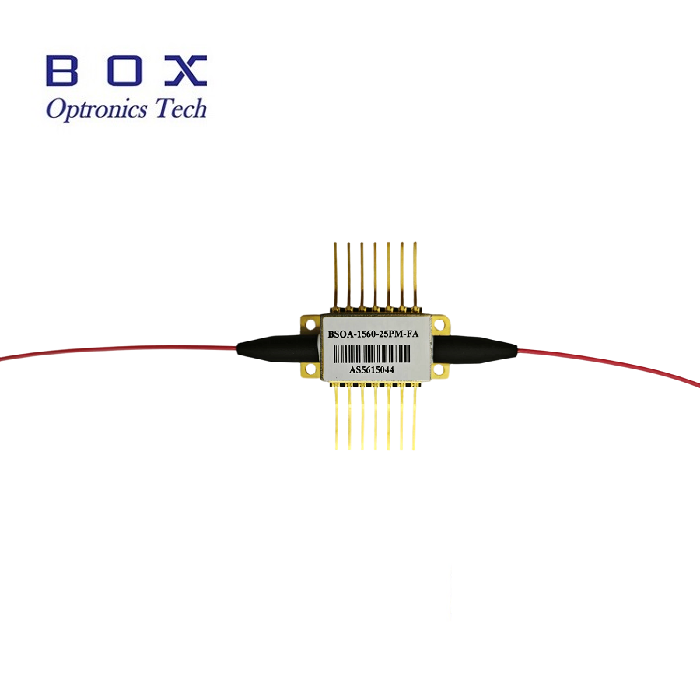 Серія продуктів напівпровідникового оптичного підсилювача (SOA) в основному використовується для посилення оптичного сигналу та може значно збільшити вихідну оптичну потужність. Серед інших характеристик ці продукти мають високий коефіцієнт підсилення, низьке енергоспоживання та підтримку поляризації, а також повністю придатні для обробки за допомогою технології, що контролюється всередині країни.
