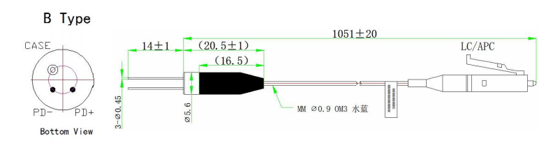 InGaAs Pigtailed фотодіоди, з’єднані з багатомодовим волокном, з діаметром серцевини 50 мкм або 62,5 мкм на вибір і діапазоном довжин хвиль виявлення 900-1700 нм.