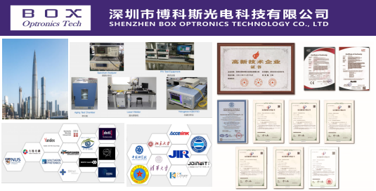 Shenzhen Box Optronics Technology Co., Ltd.(BOX Optronics Tech) — це високотехнологічне підприємство, що спеціалізується на волоконно-оптичному зв’язку та волоконно-оптичному датчику. Компанія прагне надавати клієнтам продукти та послуги вищої якості, швидше реагувати на обслуговування та допомагати клієнтам створювати більшу цінність. Завдяки сильним науково-дослідним, виробничим і торговим можливостям, а також досвідченим інженерам-розробникам, компанія може адаптувати персоналізовані продукти відповідно до потреб різних клієнтів. Протягом багатьох років компанія прагне до технологічних інновацій, постійно впроваджуючи передові технології та талант. Вона отримала кредитні сертифікати на рівні AAA, технологічні SME та національні високотехнологічні підприємства, а також успішно пройшла сертифікацію системи якості ISO9001, суворо дотримуючись системних вимог і ретельно перевіряючи якість продукції.